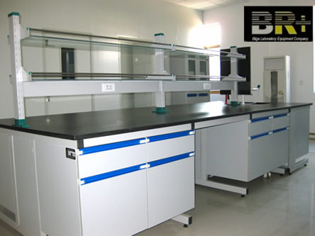 中央实验台台面选用美国威盛亚实芯理化板,柜体采用1.2mm的冷轧钢板,经酸洗磷化环氧树脂烤漆处理。其结构合理,承重性好,组合灵活,利于维修,便于安装运输,是中、高档实验室的最佳选择。钢架表面均经酸洗、磷化、环氧树脂粉末静电喷涂。美观、现代、抗酸碱。